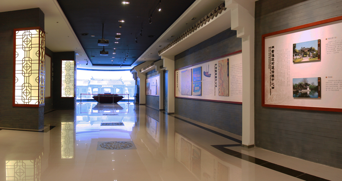 淮安規(guī)劃館是展示淮安城市文化,建設(shè)成就的重要平臺(tái),也是公眾交流的平臺(tái),更是對淮安了解的直接窗口,為了能夠更好體現(xiàn)這一地域性,同時(shí)避免城市同類館中似曾相識(shí)的錯(cuò)覺,在整體風(fēng)格上為尋找一條能夠承載這一使命的元素,我們將以“壯麗東南第一州”作為主線,因水而生、因水而興的淮安城,享“壯麗東南第一州”之美譽(yù),因而這是一部具有是文化的歷史城市。