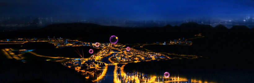 連綿的山脈與自然水系拉開(kāi)了大庸古城的城市序幕,一覽美景從金鞭溪到袁家界、再漫游至天門(mén)山,將溝壑縱橫、神秘莫測(cè)的自然奇跡盡收眼底。再穿越至2030年的張家界,向我們展現(xiàn)的又是另一幅極具現(xiàn)代氣息的山水城交融的城市畫(huà)卷。